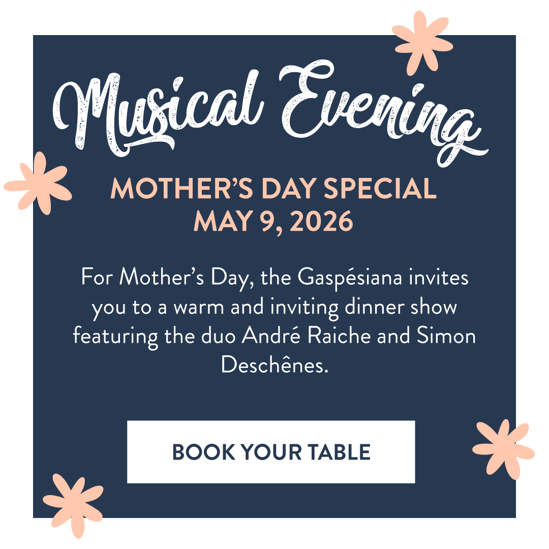 Le Gaspésiana is the place for you if your idea of a perfect holiday is a warm hospitality, cozy comfort and attentive staff. The refined flavours of our Au Goût du Large restaurant also make Le Gapésiana an incomparable gourmet destination! Located in Sainte-Flavie, Le Gaspésiana is situated 320 km east (200 miles) of Quebec City and only 2 km (1.2 miles) away from the Mont-Joli airport.